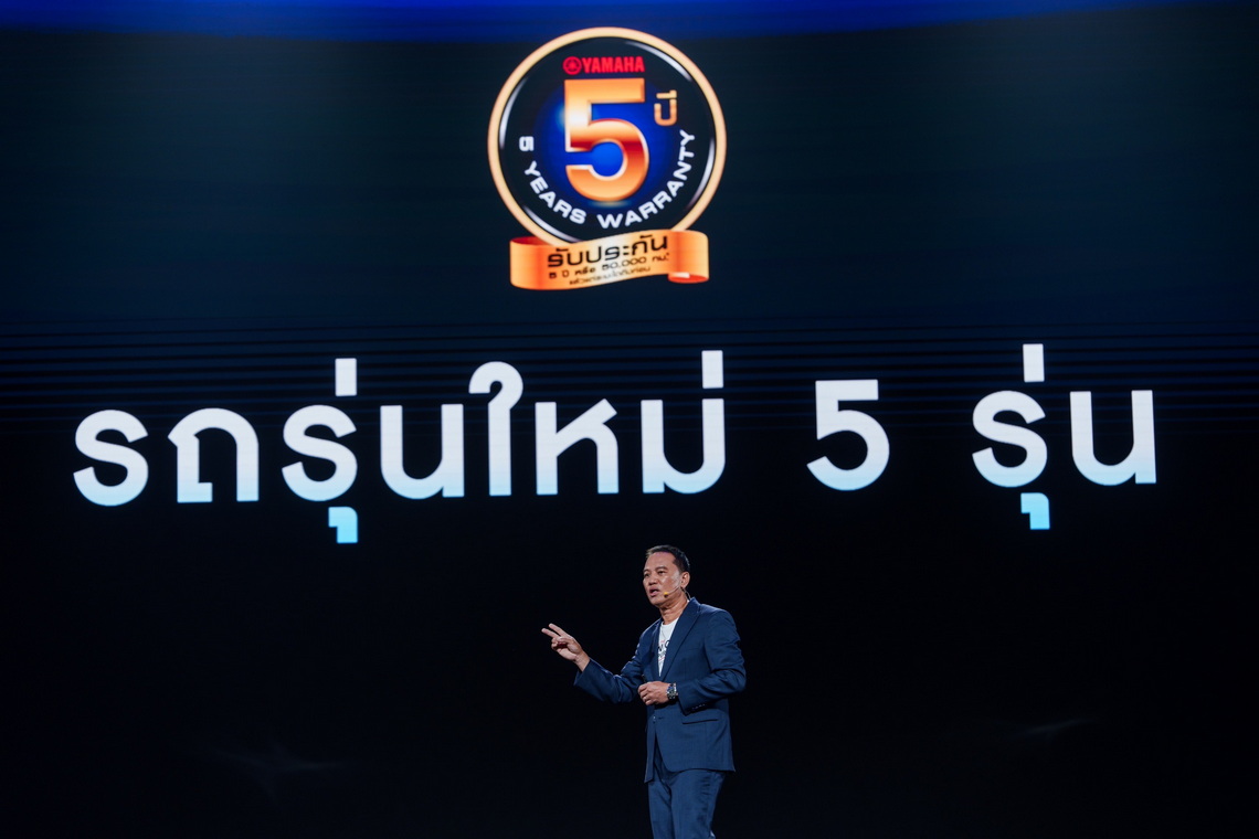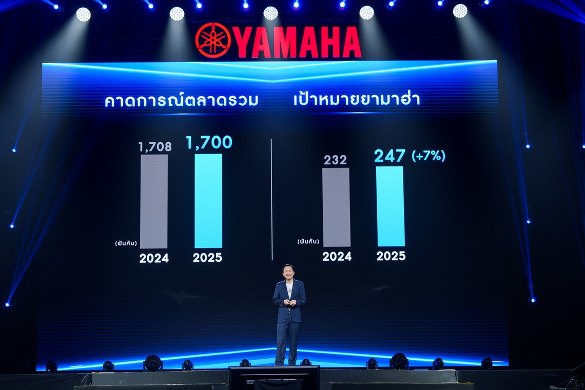 นายพงศธร เอื้อมงคลชัย ประธานกรรมการบริหาร มร.ฮิเดฮิโกะ ทาคากิ รองประธานกรรมการบริหาร นายภาณุพล กิตติคำรณ ผู้จัดการใหญ่ด้านการค้า พร้อมคณะผู้บริหารระดับสูง บริษัท ไทยยามาฮ่ามอเตอร์ จำกัด ถ่ายรูปร่วมกันในงานแถลงนโยบายประจำปี 2568 โดยในปีที่ผ่านมายามาฮ่าได้รับความไว้วางใจจากชาวไทยเป็นอย่างดี โดยในปี 2568 นี้ ยามาฮ่าชูแคมเปญ “FEEL THE UNIQUE EXPERIENCE….สุดทุกทาง...ต่างทุกฟีล” ที่จะเปิดประสบการณ์สุดพิเศษให้กับลูกค้ารถจักรยานยนต์ยามาฮ่าได้สัมผัสกับเทคโนโลยีอันล้ำสมัยของรถจักรยานยนต์ และไลฟ์สไตล์ที่ตอบโจทย์ทุกความต้องการของลูกค้า โดยยามาฮ่าส่ง 5 โมเดลใหม่ เพื่อชิงส่วนแบ่งการตลาดปี 2568 เป็น 14.5%