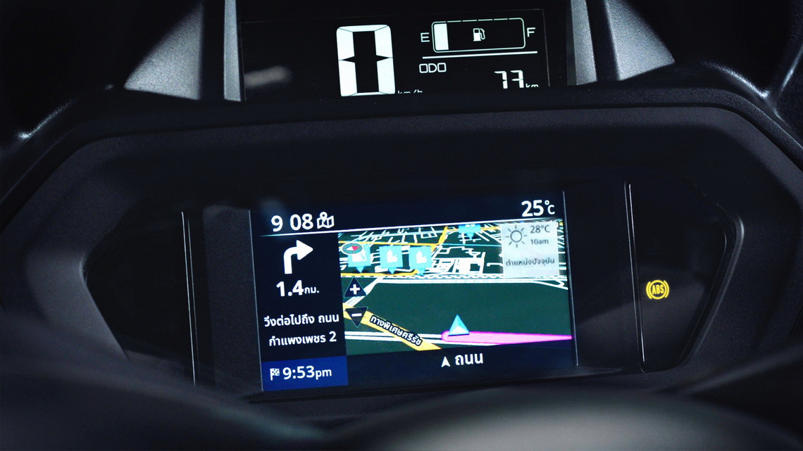 NEW XMAX CONNECTED ยังเหนือชั้นด้วย GARMIN NAVIGATION SYSTEM ระบบนำทางจาก GARMIN มุ่งสู่จุดหมายอย่างมั่นใจทุกเส้นทาง ด้วยการเชื่อมต่อ Y-Connect และแอปพลิเคชัน Garmin StreetCross เพื่อค้นหาสถานที่และกำหนดปลายทาง ระบบนำทางจะแสดงผลบนหน้าจอ TFT สามารถซูมแผนที่และปรับเปลี่ยนมุมมองได้ง่ายด้วยสวิตช์ที่แฮนด์ซ้ายอย่างราบรื่น ช่วยให้ทุกการเดินทางเป็นไปอย่างมั่นใจไร้กังวล ซึ่งสามารถดูข้อมูลต่างๆ ได้ดังนี้