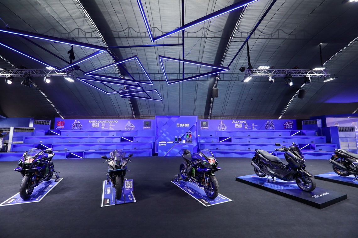 โดยภายใน "Yamaha GP Pavilon" แฟนมอเตอร์สปอร์ตจะได้สัมผัสกับรถ Yamaha R1 ที่ทำลวดลายกราฟฟิคเหมือนรถแข่ง M1 ที่ในทำการแข่งขันในสนามของทีมแข่ง Monster Energy Yamaha MotoGP Team และทีม Prima Pramac Yamaha MotoGP ซึ่งทำมาเพื่อให้นักแข่งอย่าง Fabio Quartararo, Alex Rins, Jack Miller และ Miguel Oliveira ใช้ขับขี่ในงาน MotoGP Launch Bangkok 2025 ที่ผ่านมา รวมถึงรถแข่งยามาฮ่าที่ใช้ในการแข่งขันชิงแชมป์โลก WSSP, ชิงแชมป์เอเชีย ARRC และรายการ Yamaha R3 Blu Cru Asia Pacific อีกด้วย รวมถึงรถจักรยานยนต์โมเดลใหม่ล่าสุดอย่าง Yamaha R9 ที่มาพร้อมกับลวดลายของทีมแข่ง Monster Energy Yamaha MotoGP Team และ Yamaha All New NMAX Tech Max ที่พร้อมให้ทุกคนได้สัมผัสอย่างใกล้ชิด
