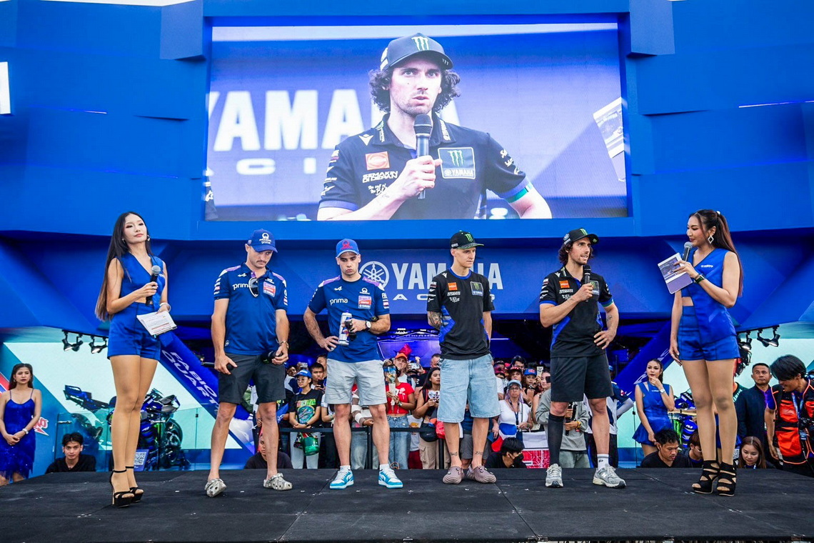 โดย 4 นักแข่งยามาฮ่าร่วมตอบคำถาม และทักทายกับแฟนๆ มอเตอร์สปอร์ตชาวยามาฮ่าอย่างใกล้ชิด พร้อมนำของที่ระลึกสุดพิเศษจากยามาฮ่ามาแจกอย่างมากมาย