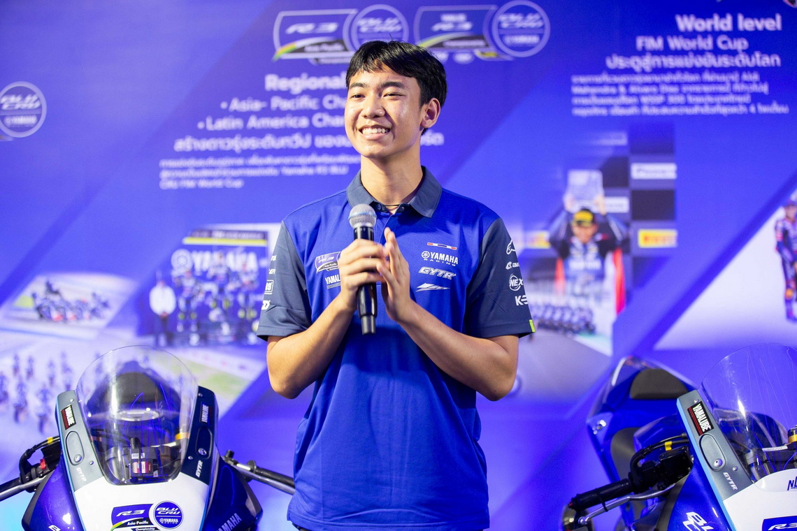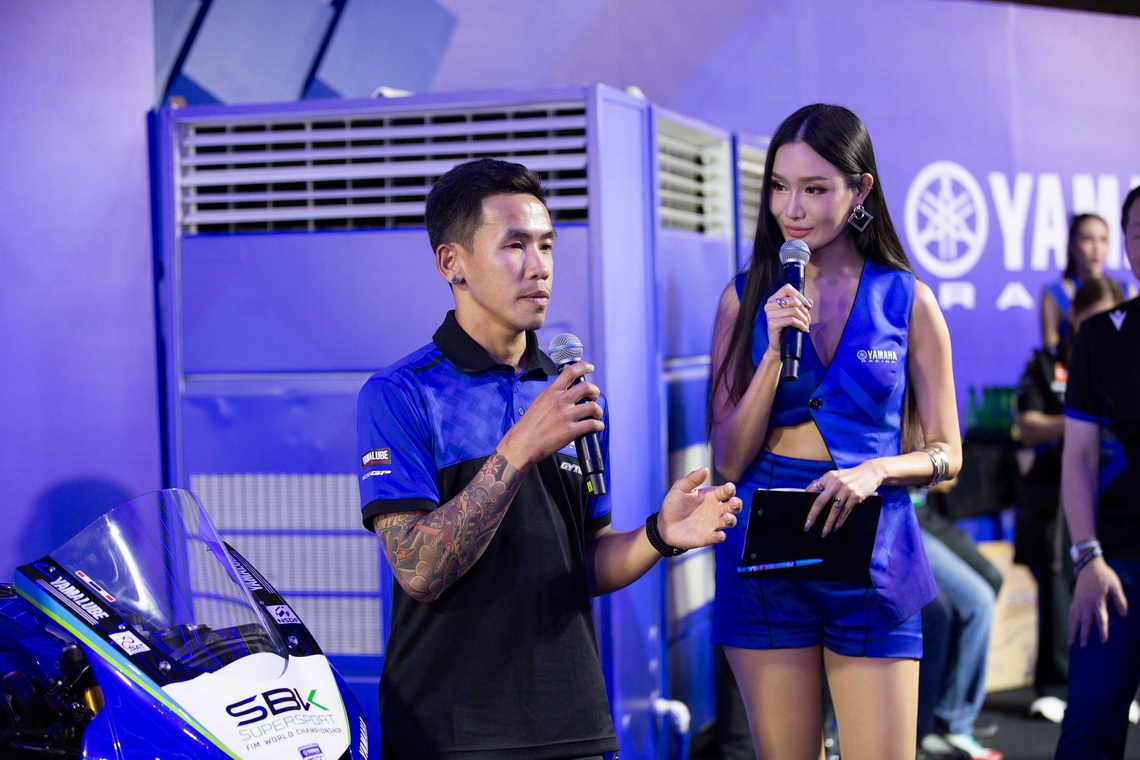 นายพงศธร เอื้อมงคลชัย ประธานกรรมการบริหาร นายภาณุพล กิตติคำรณ ผู้จัดการใหญ่ด้านการค้า นายอุกฤษณ์ ภาควิวรรธ รองผู้จัดการใหญ่ด้านวางแผนการค้า และการตลาด นายกัมพล พรสูงส่ง รองผู้จัดการใหญ่ด้านขาย บริการ และอะไหล่ บริษัท ไทยยามาฮ่ามอเตอร์ จำกัด ถ่ายรูปร่วมกับ 4 นักแข่งในสังกัด ยามาฮ่า ไทยแลนด์ เรซซิ่งทีม นำโดย ตี อนุภาพ ซามูล - ไอเดีย กฤตภัทร เขื่อนขำ 2 นักแข่งยามาฮ่า ที่เคยลุยศึกเวิลด์ซูเปอร์ไบค์ ควง 2 ดวงรุ่งจาก YAMAHA R3 BLU CRU Asia-Pacific ฟลูมูน พศิน ชมพูรัตน์ และ อาร์ตี้ ธนกฤต ประทุมทอง ในกิจกรรม มีทแอนด์กรี๊ด กระทบไหล่ 4 นักแข่งไทยที่มาร่วมกิจกรรมในครั้งนี้ โดย 4 นักแข่งดาวรุ่งไทยนำของรางวัล มาแจกให้กับเหล่าสาวกยามาฮ่าอย่างมากมาย