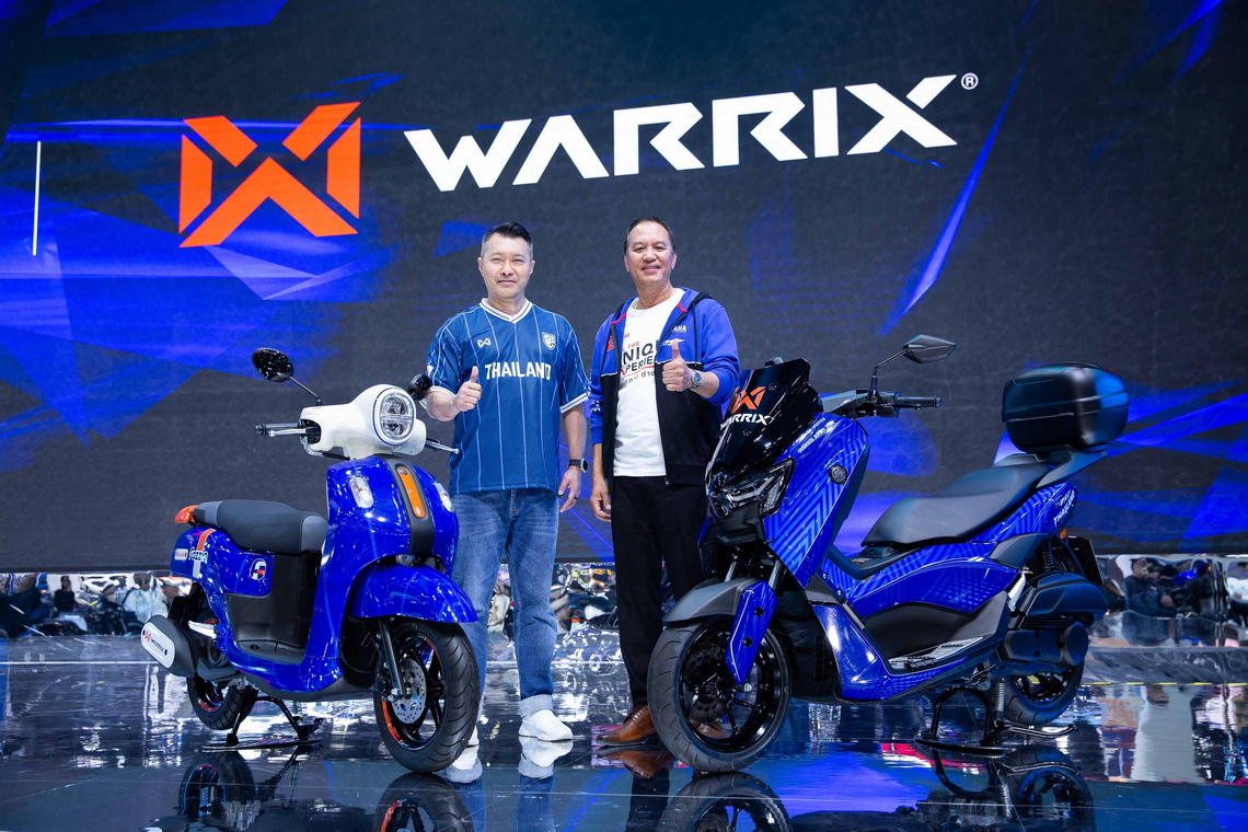 นายภาณุพล กิตติคำรณ ผู้จัดการใหญ่ด้านการค้า นายอุกฤษณ์ ภาควิวรรธ รองผู้จัดการใหญ่ด้านการค้า และการตลาด บริษัท ไทยยามาฮ่ามอเตอร์ จำกัด ถ่ายภาพร่วมกับ นายวิศัลย์ วนะศักดิ์ศรีสกุล ประธานเจ้าหน้าที่บริหาร บริษัท วอร์ริกซ์ สปอร์ต จำกัด (มหาชน) ในการแถลงข่าวแคมเปญ Warrix x YAMAHA ”FEEL THE UNIQUE EXPERIENCE ซื้อรถจักรยานยนต์ยามาฮ่า FAZZIO ภายในงานมอเตอร์โชว์ รับฟรี เสื้อ Thailand Lifestyle Oversize Jersey มูลค่า 890 บาท พร้อมสกรีนชื่อ และเบอร์ฟรีทันที พร้อมกันนี้ภายในงาน ยามาฮ่าได้เปิดตัว All New NMAX WARRIX Edition และ YAMAHA FAZZIO WARRIX Edition ที่ถูกออกแบบมาเป็นพิเศษ ที่ถ่ายทอดแรงบันดาลใจจากจิตวิญญาณของนักกีฬาไทย ผสานกับความโฉบเฉี่ยวของยามาฮ่าอย่างลงตัว โดยมีแรงบันดาลใจจากความมุ่งมั่นของนักเตะทีมชาติไทย และดีไซน์ที่สะท้อนถึงเส้นทางของความฝันและความสำเร็จ พร้อมกับเปิดฟลอร์แฟชั่นโชว์สุดอลังการ กับเสื้อผ้า ยามาฮ่า คอลเลกชัน และ วาลิค คอลเลกชัน อีกด้วย