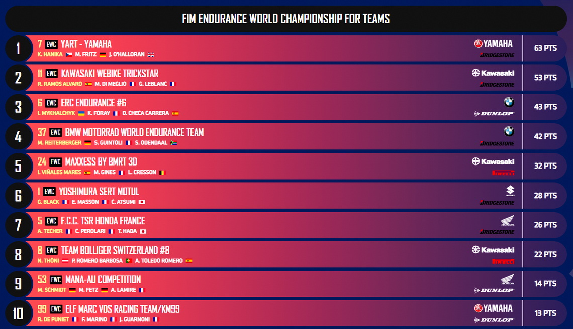 การแข่งขันรถจักรยานยนต์ทางเรียบสุดทรหด รายการ 2025 FIM Endurance World Championship สนาม 1 ซึ่งทำการแข่งขันกันที่สนาม Le Mans ประเทศฝรั่งเศส โดยยอดทีมพันธุ์อึดอย่าง YART Yamaha EWC Official Team ที่ลงสนามชิงชัยด้วยรถแข่ง Yamaha YZF-R1 หมายเลข 7 พร้อมไลน์อัพนักแข่งอย่าง Karel Hanika - Marvin Fritz - Jason O'Halloran สามารถเค้นฟอร์มโหดโชว์สมรรถนะสุดแกร่ง จนสามารถคว้าชัยชนะมาครองได้อย่างยิ่งใหญ่ หลังจากทำการแข่งขัน 24 ชั่วโมงติดต่อกัน ด้วยผลงาน 782 รอบ พร้อมเก็บแต้มประเดิมฤดูกาลไปทั้งสิ้น 63 คะแนน