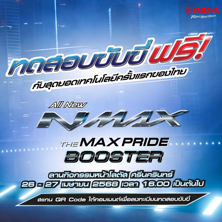 ยามาฮ่า ชวนมามันส์เปลี่ยนโลกกับการทดสอบขับขี่ All New Yamaha NMAX พร้อมรับโปรโมชัน และกิจกรรมความมันส์ที่ไม่เหมือนใคร! 26-27 เมษายนนี้ ที่ โลตัส ศรีนครินทร์