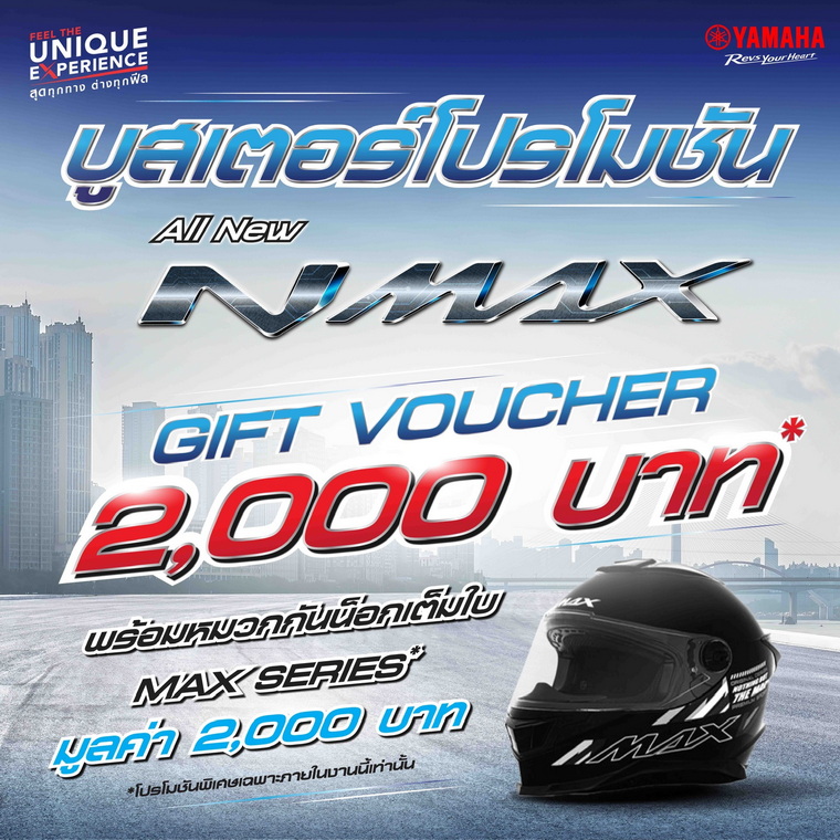 - ฟรี หมวกกันน็อกเต็มใบ MAX SERIES มูลค่า 2,000 บาท