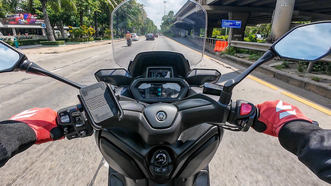 อีกทั้งระบบการส่งกำลังที่เป็นแบบ CVT ก็สามารถตอบสนองได้ไว แต่มีความนุ่มนวล ไม่มีอาการกระชาก แม้ผู้ขับขี่จะกดคันเร่งแรงๆ ก็ตาม และจุดเด่นอีกเรื่องของเครื่องยนต์ Blue Core ที่ใช้กับ XMAX CONNECTED ก็คือ เรื่องความประหยัดน้ำมันเชื้อเพลิง ซึ่งถ้าขับขี่เดินทางไกลด้วยความเร็วคงที่ที่ประมาณ 100-120 กม./ชม. น้ำมันเต็มถังที่มีความจุ 13 ลิตร เราสามารถเดินทางได้ระยะทางไกลมากกว่า 300 กม. อย่างแน่นอน!!!