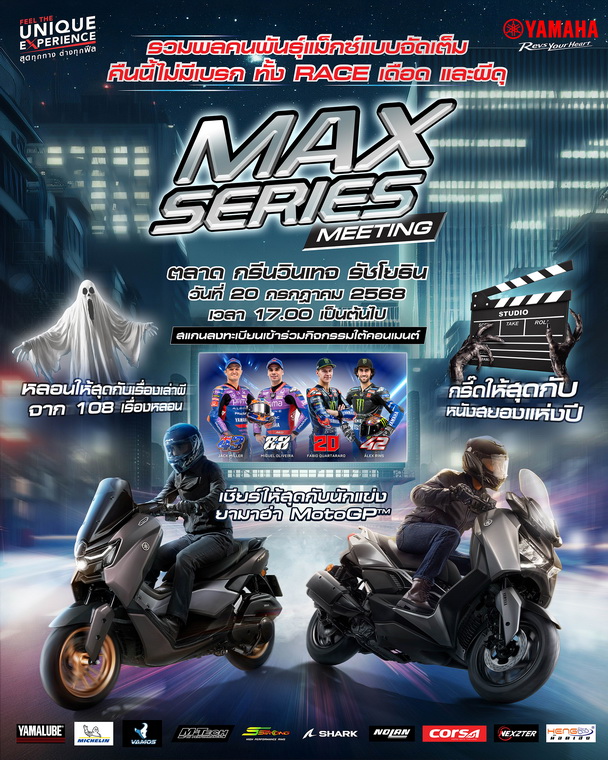 งานที่ชาวไบเกอร์รอคอย งาน “MAX Series Meeting” รวมพลครั้งใหญ่สุดตระการตาสำหรับผู้ที่หลงใหลในตระกูล MAX SERIES ทั้ง XMAX และ NMAX สู่ค่ำคืนแห่งความตื่นเต้นเร้าใจและกิจกรรมบันเทิงที่ไม่เหมือนใคร การรวมตัวครั้งสำคัญของชุมชน MAX SERIES ที่จะมอบความมันส์แบบไม่มีเบรก ในวันอาทิตย์ที่ 20 กรกฎาคม นี้ ตั้งแต่เวลา 17.00 น. ที่ตลาดกรีนวินเทจ รัชโยธิน ค่ำคืนที่ชาว MAX ทุกคนไม่ควรพลาด!