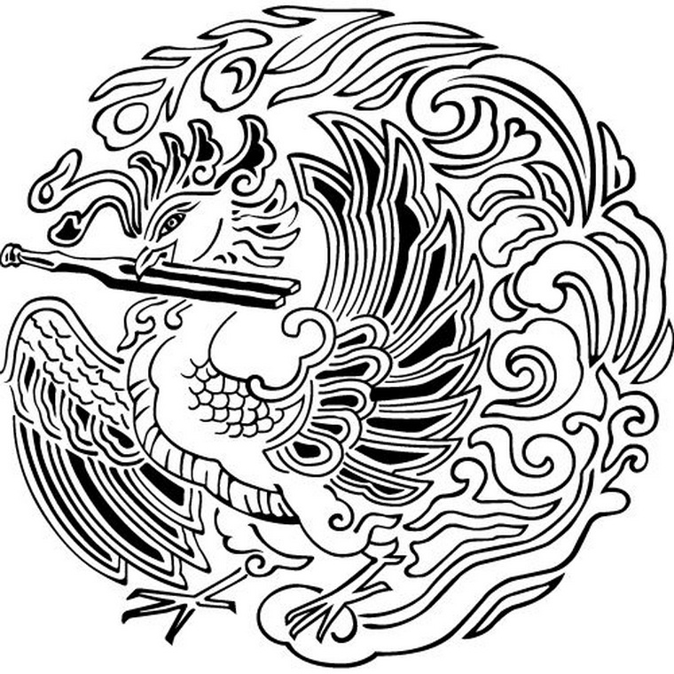 โลโก้ของ บริษัท นิปปอน กักกิ ที่ออกแบบเป็นฟีนิกซ์จีนคาบส้อมเสียง