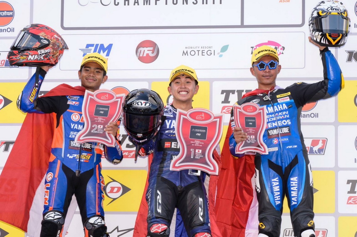 “ไอเดีย” กฤตภัทร เขื่อนคำ ยอดนักบิดดาวรุ่งชาวไทยจาก ยามาฮ่า ไทยแลนด์ เรซซิ่งทีม เค้นฟอร์มเก่งทะยานจากกริดที่ 7 บิดคว้าชัยชนะศึกสองล้อชิงแชมป์เอเชีย สนาม 3 เรซที่ 2 ในรุ่น เอเชีย โปรดักชั่น 250 ซีซี พาเพลงชาติไทยบรรเลงที่ โมบิลิตี้ รีสอร์ต โมเตกิ ประเทศญี่ปุ่น ขณะที่นักบิดรุ่นพี่ “ตี” อนุภาพ ซามูล คว้าท็อป 4 ซูเปอร์สปอร์ต 600 ซีซี โดยทั้งคู่รั้งรองจ่าฝูงบนตารางคะแนนสะสม หลังผ่านสุดสัปดาห์นี้