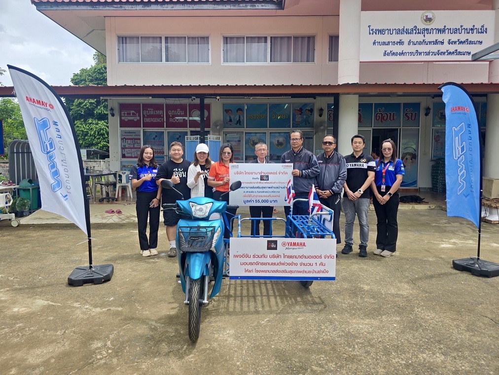 บริษัท ไทยยามาฮ่ามอเตอร์ จำกัด ร่วมสนับสนุนการปฏิบัติงานด้านสาธารณสุข มอบรถจักรยานยนต์ยามาฮ่าฟินน์ พร้อมพ่วงข้าง แก่โรงพยาบาลส่งเสริมสุขภาพตำบลชำเม็ง จังหวัดศรีสะเกษ