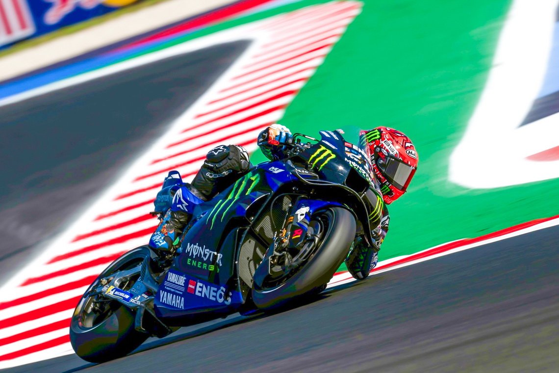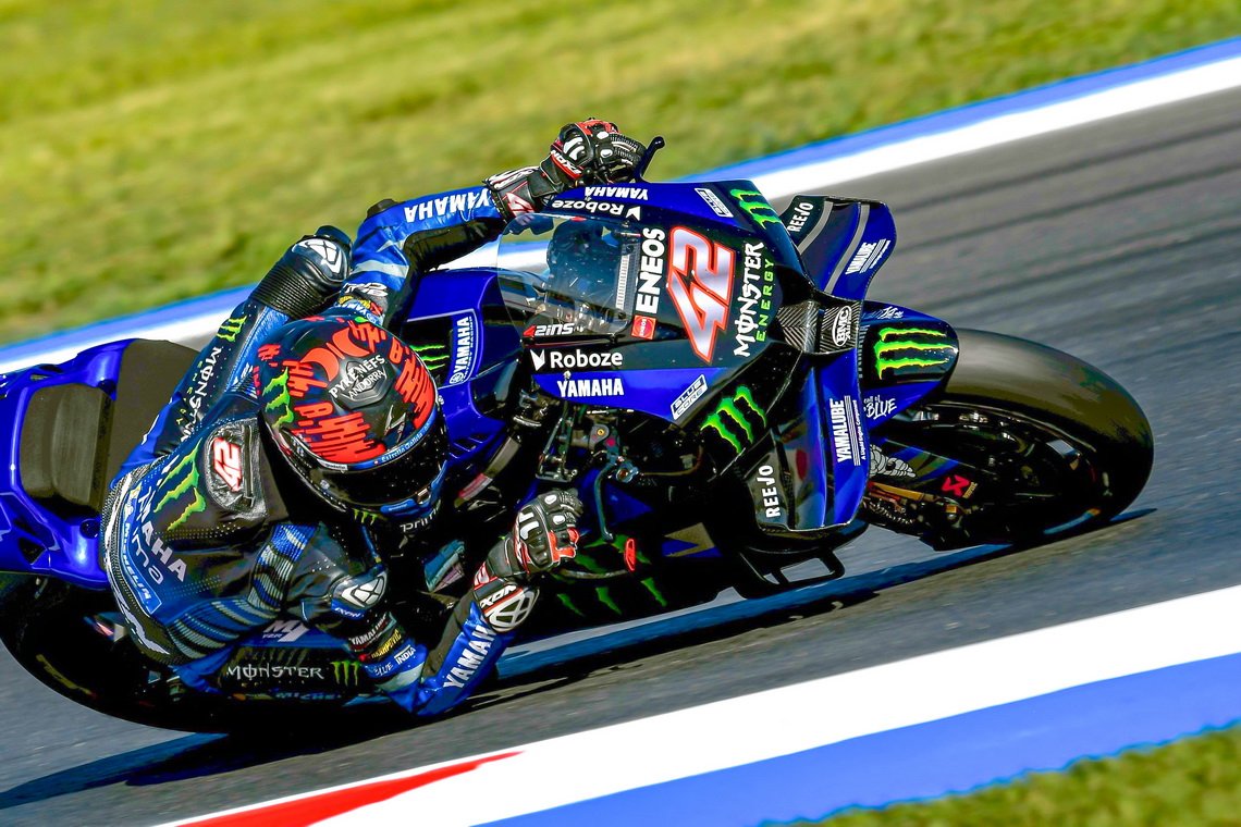 "เอลดิอาโบล" ฟาบิโอ กวาร์ตาราโร ยอดนักบิดเฟรนช์นำทัพรถแข่ง YZR-M1 รั้งท็อป 12 ซ้อมวันแรกในศึก โมโตจีพี 2025 สนาม 16 ซาน มาริโน กรังด์ปรีซ์ ขณะที่ ออกุสโต เฟร์นันเดซ เปิดตัวรถแข่ง V4 ครั้งแรกอย่างยอดเยี่ยมในสนามแข่งที่ มิซาโน เวิลด์ เซอร์กิต มาร์โก ซิมอนเชลลี ประเทศอิตาลี เมื่อวันศุกร์ที่ผ่านมา