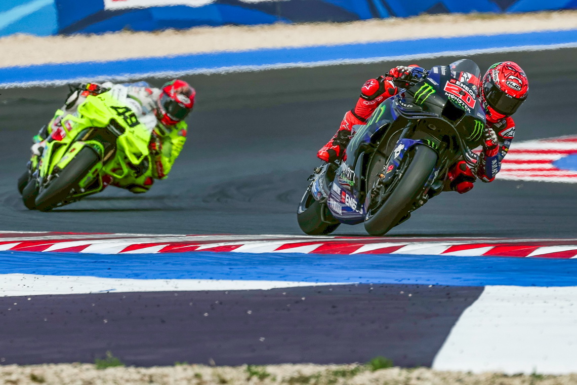 "เอลดิอาโบล" ฟาบิโอ กวาร์ตาราโร ยอดนักบิดเฟรนช์จาก มอนสเตอร์ อีเนอร์จี้ ยามาฮ่า โมโตจีพี โชว์ความเร็วยอดเยี่ยมบิดคว้ากริดแถวหน้าในศึก โมโตจีพึ สนาม 16 รายการ ซาน มาริโน กรังด์ปรีซ์ ก่อนเจอเรซสุดพลิกผันใน สปรินต์เรซ เมื่อวันเสาร์ที่ผ่านมา ที่ มิซาโน ประเทศอิตาลี