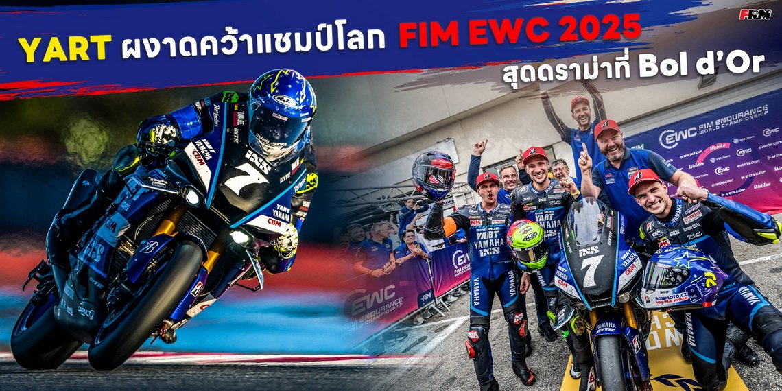 การแข่งขันสุดเข้มข้นในรายการ Bol d’Or ครั้งที่ 88 ที่สนาม Circuit Paul Ricard ประเทศฝรั่งเศส กลายเป็นเวทีประวัติศาสตร์สำหรับทีม Yamalube YART Yamaha EWC Official Team เมื่อสามนักแข่งอย่าง Marvin Fritz, Karel Hanika และ Jason O’Halloran สามารถคว้าแชมป์โลก FIM Endurance World Championship 2025 ไปครองได้สำเร็จ ด้วยคะแนนเฉือนคู่แข่งเพียง 1 คะแนน!