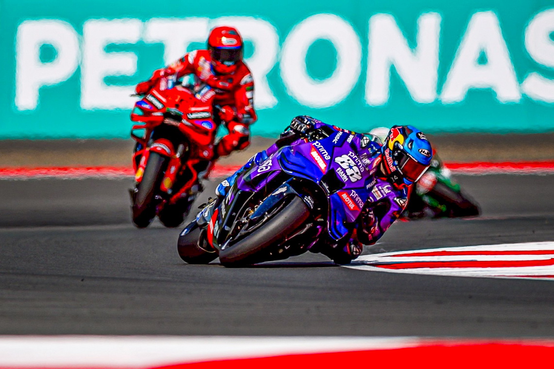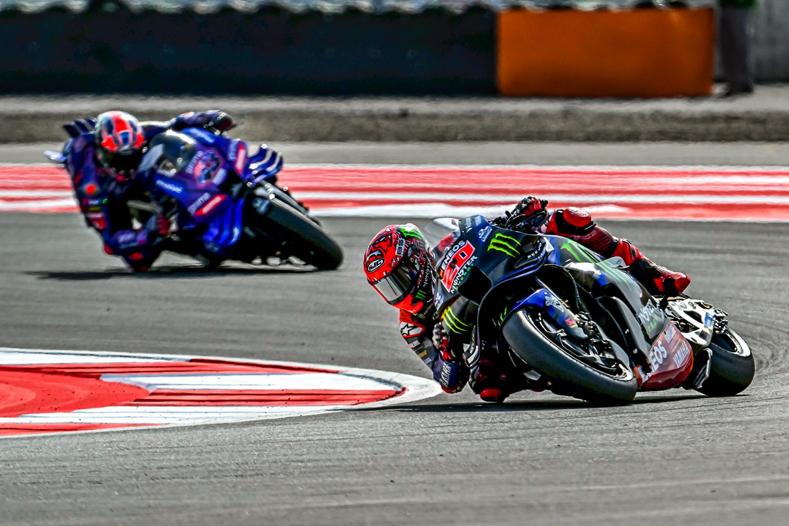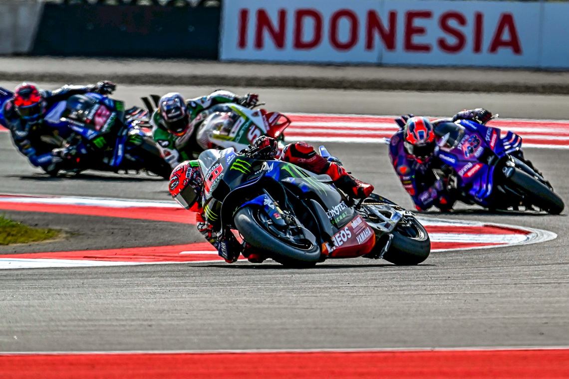 “เอลดิอาโบล” ฟาบิโอ กวาร์ตาราโร ยอดนักบิดเฟรนช์จาก มอนสเตอร์ อีเนอร์จี้ ยามาฮ่า โมโตจีพี ไล่แซงดุเดือดบิดคว้าท็อป 7 ในศึกโมโตจีพี 2025 สนาม 18 อินโดนีเซียน กรังด์ปรีซ์ เมื่อวันอาทิตย์ที่ 5 ตุลาคมที่ผ่านมา ที่ มันดาลิกา อินเตอร์เนชั่นแนล เซอร์กิต ประเทศอินโดนีเซีย