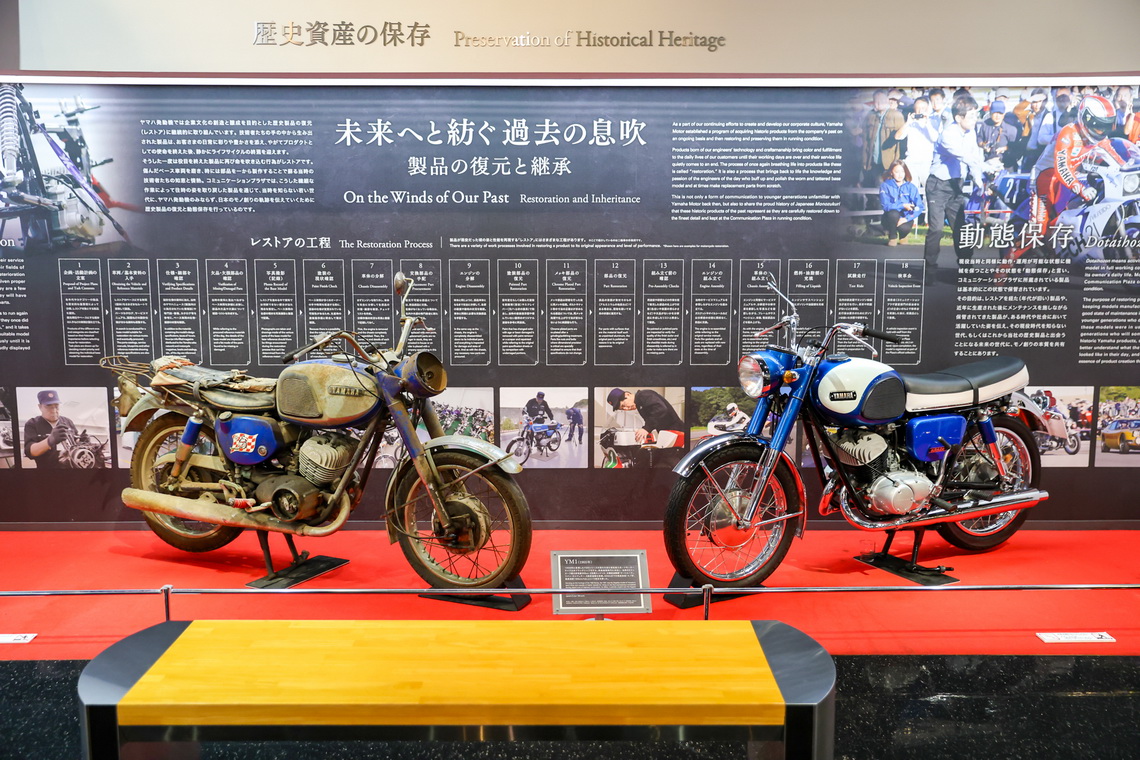 ภายในอาคารจัดแสดงเต็มไปด้วยเรื่องราวความเป็นมาของบริษัท ตั้งแต่ยุคเริ่มต้นการผลิตเครื่องดนตรี ไปจนถึงความสำเร็จในวงการยานยนต์ ไม่ว่าจะเป็นรถจักรยานยนต์ รถแข่ง MotoGP รถ ATV ไปจนถึงเครื่องยนต์เรือและผลิตภัณฑ์พลังงานทางทะเล