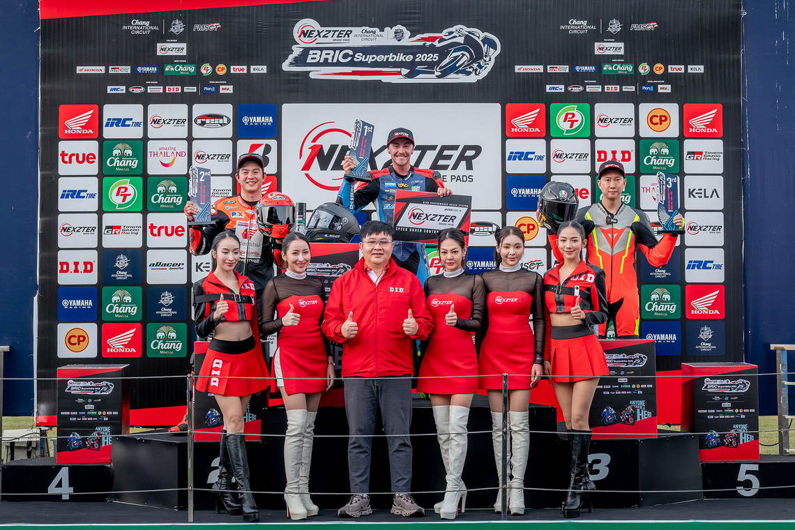 ศึกสองล้อเบอร์หนึ่งของไทย “เน็กซ์เตอร์ บีอาร์ไอซี ซูเปอร์ไบค์ แชมเปียนชิพ 2025 สนามสุดท้าย” ดวลเรซแรกประเดิมสุดสัปดาห์ด้วยความมันส์ระดับโลก “แสตมป์" อภิวัฒน์ วงศ์ธนานนท์ จอมเก๋าจาก อีสต์ เอ็นเจที เรซซิ่ง ทีม ฟอร์มโหดแซงโค้งสุดท้ายคว้าชัยรุ่นใหญ่เหนือ "มิกซ์" ธนัช ละอองปลิว นักบิดดาวรุ่งจาก อิเดมิตสึ ฮอนด้า ทีม คริสมาส ขณะมือระดับโลก มาร์วิน ฟริตซ์ นักบิดเอ็นดูรานซ์เวิลด์ แชมเปียนชิพ ชาวเยอรมันจาก บัตเลอร์ การาจ เรซซิ่ง ทีม ประเดิมโพเดียมแรก ส่วน “โอม” ภวัต จิตต์สว่างดี พระเอกชื่อดังจาก ยามาฮ่า ทีเอ็นพี พีทีที ลูบริแคนท์ส แจ้งเกิดด้วยการคว้าโพเดียมแรกในชีวีตได้สำเร็จ ส่วน “เบนซ์ เรซซิ่ง” อริย์ธัช วรโรจน์เจริญเดช จาก เรปโซล อาร์-ซีรีส์ ทีม บิดเข้าป้ายในอันดับ 3 ของรุ่น ซูเปอร์ไบค์ 1,000 ซีซี (SB2)