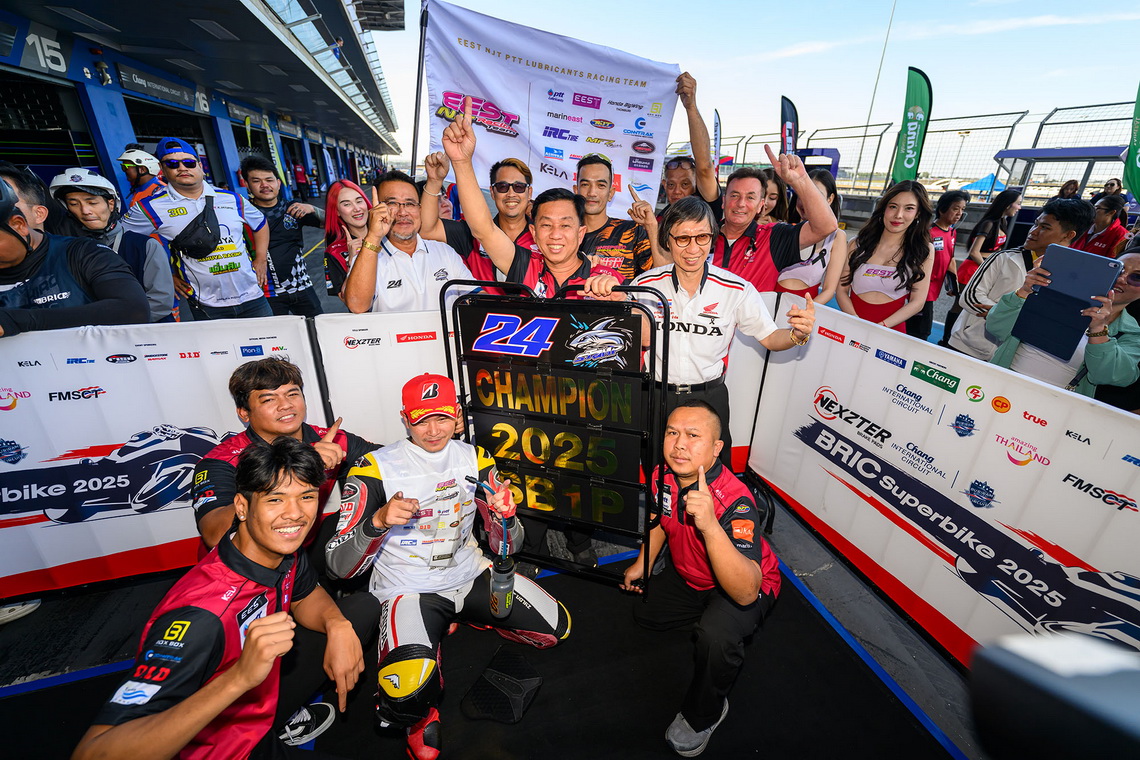 ศึกซูเปอร์ไบค์มาตรฐานโลก “เน็กซ์เตอร์ บีอาร์ไอซี ซูเปอร์ไบค์ แชมเปียนชิพ 2025” รูดม่านปิดฉากอย่างยิ่งใหญ่ ด้วยเกมการลุ้นแชมป์สุดมันส์ทุกรุ่นในเรซสุดท้าย โดย "มิกซ์" ธนัช ละอองปลิว นักบิดดาวรุ่งจาก อิเดมิตสึ ฮอนด้า ทีม คริสมาส เข้าวินส่งท้ายปี ขณะ “แสตมป์" อภิวัฒน์ วงศ์ธนานนท์ จาก อีสต์ เอ็นเจที เรซซิ่ง ทีม ผงาดแชมป์ประจำปีรุ่นใหญ่ ด้าน นธีธาร ทองโคตร จาก ยามาฮ่า ทีเอ็นพี พีทีที ลูบริแคนท์ส ทีม คว้าชัย ซูเปอร์สต็อกพร้อมครองแชมป์ประจำปี ส่วน ต่อศักดิ์ นวลสาย จาก ยามาฮ่า ทีเอ็นที พีทีที ลูบริแคนท์ส ครองบัลลังก์ ซูเปอร์สปอร์ต 600 ซีซี