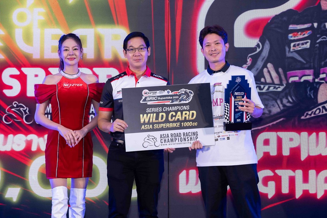 นักบิดที่สามารถคว้าแชมป์ประจำปีรุ่นใหญ่ที่สุดอย่าง ซูเปอร์ไบค์ 1,000 ซีซี เอสบี 1 โปร และรับสิทธิ์ไวลด์การ์ดไปแข่งขัน เอเชีย โรด เรซซิ่ง 2026 ได้แก่ อภิวัฒน์ วงศ์ธนานนท์ นักบิดจอมเก๋าจาก อีสต์ เอ็นเจที เรซซิ่ง ทีม