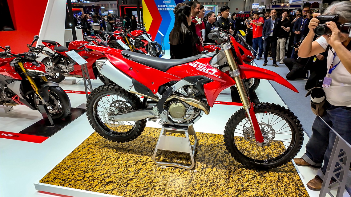 Ducati มีไฮไลท์อยู่การเปิดตัว Ducati XDiavel V4 สปอร์ตครุยเซอร์ ที่มาพร้อมกับด้วยรูปลักษณ์ที่สง่างาม โดดเด่นด้วยดีไซน์ที่ปราดเปรียวและเสน่ห์อันน่าหลงใหล และเครื่องยนต์ V4 ที่ทรงพลัง ที่เป็นหัวใจหลักที่ให้กำลังมากถึง 168 แรงม้า และรุ่น 450DesmoMX รถโมโตครอสรุ่นแรกของแบรนด์ Ducati ที่เปิดตัวมาอวดสายวิบากในเมืองไทยโดยที่ยังไม่เปิดราคาจำหน่าย