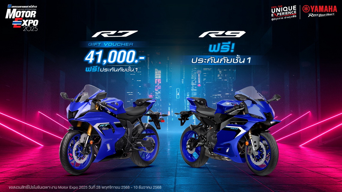 พบกับโปรโมชันสุดพิเศษได้ที่บูธ YAMAHA FEEL THE UNIQUE EXPERIENCE ภายในงาน Motor EXPO 2025 ระหว่างวันที่ 28 พฤศจิกายน – 10 ธันวาคม 2568 นี้เท่านั้น