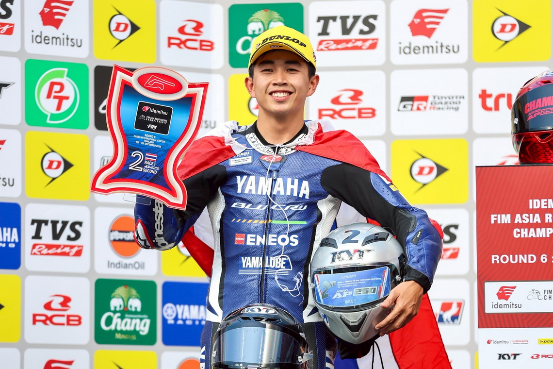 ด้านเกมรุ่น เอเชีย โปรดักชั่น 250 ซีซี ถือเป็นอีกหนึ่งครั้งที่นักบิดดาวรุ่งจาก ยามาฮ่า ไทยแลนด์ เรซซิ่ง ทีม สร้างผลงานได้อย่างโดดเด่น โดย “ไอเดีย” กฤตภัทร เขื่อนคำ เจ้าของรถแข่ง YZF-R3 หมายเลข 39 ออกสตาร์ตจากโพล ก่อนจะบิดเข้าป้ายอันดับ 2 ด้วยเวลา 18 นาที 53.074 วินาที ตามหลังผู้ชนะเพียง 0.606 วินาทีเท่านั้น