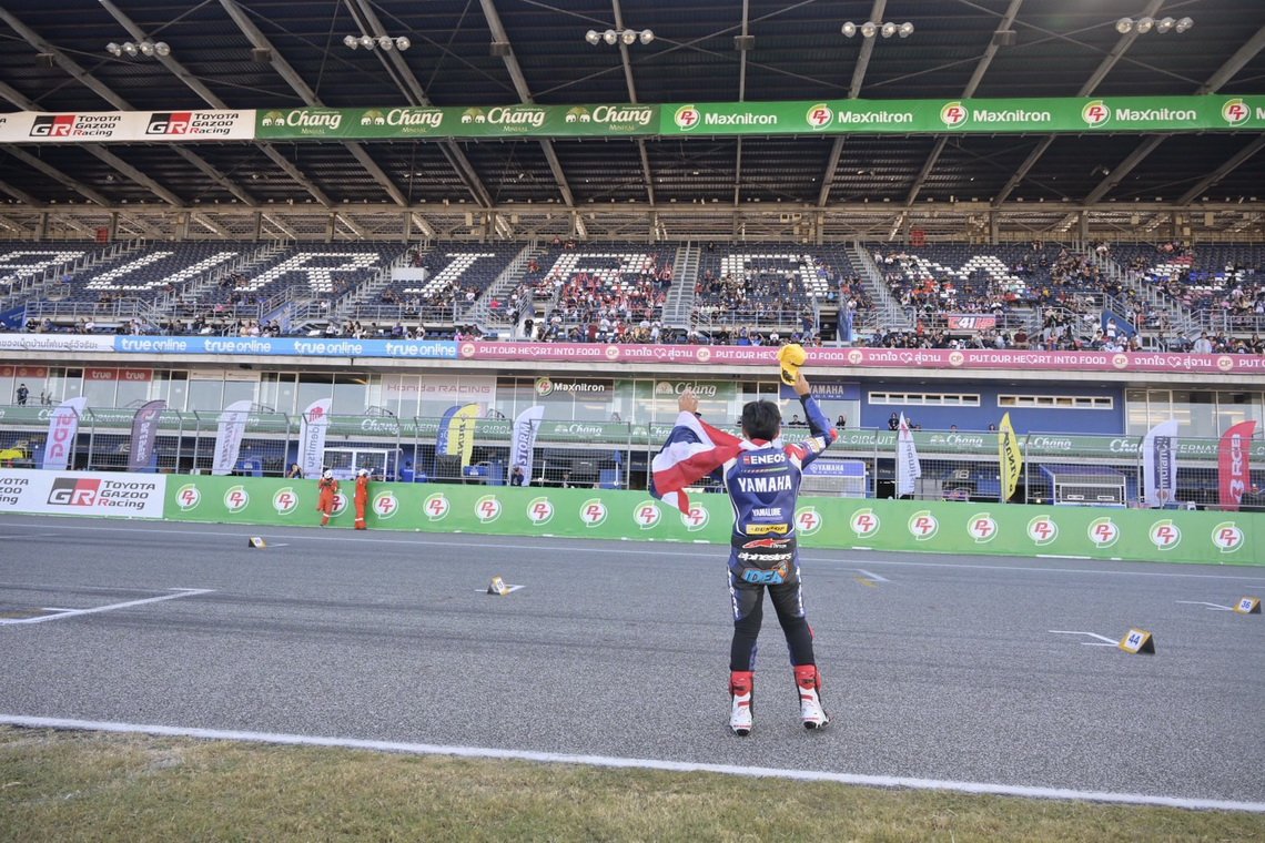 “ไอเดีย” กฤตภัทร เขื่อนคำ ยอดนักบิดดาวรุ่งชาวไทยจาก ยามาฮ่า ไทยแลนด์ เรซซิ่งทีม เค้นฟอร์มเก่งบิดคว้าชัยชนะศึกสองล้อชิงแชมป์เอเชีย สนามสุดท้าย เรซที่ 2 ในรุ่น เอเชีย โปรดักชั่น 250 ซีซี พาเพลงชาติไทยบรรเลงสนั่นที่ ช้าง อินเตอร์เนชั่นแนล เซอร์กิต
