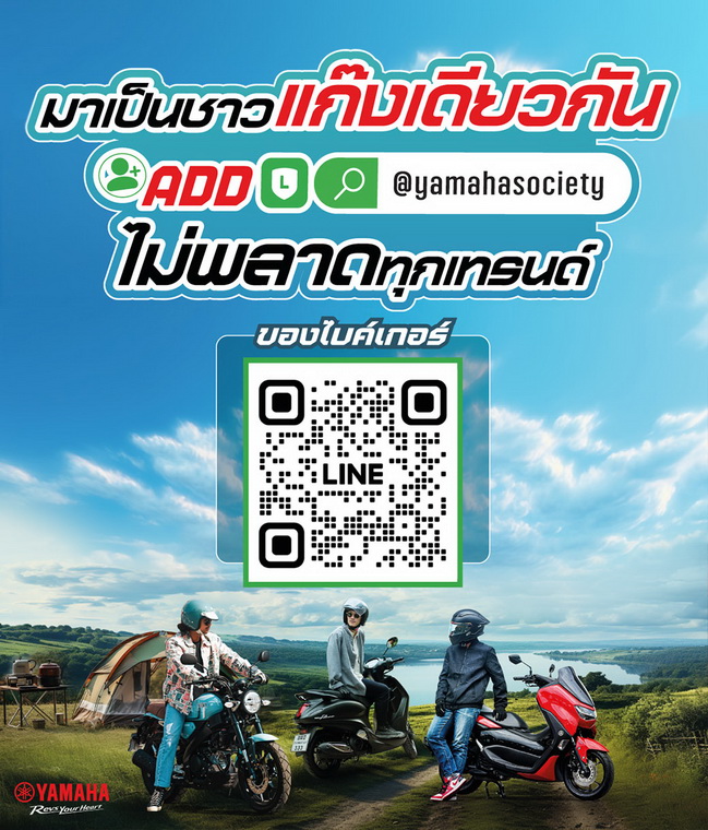 ชาวยามาฮ่า ร่วมเป็นส่วนหนึ่งของคอมมูนิตี้ดิจิทัล Yamaha Society และรับสิทธิพิเศษก่อนใคร เพียงแอดและลงทะเบียนผ่าน LINE OA: @yamahasociety วันนี้ แล้วมาร่วมกิจกรรมส่งท้ายปีกับแคมเปญ “Yamaha Line OA ลงทะเบียนไว้มีแต่ได้” ไปด้วยกัน ติดตามข้อมูลข่าวสาร กิจกรรม และสิทธิประโยชน์มากมายได้ที่ LINE OA: @yamahasociety หรือ Facebook: Yamaha Society Thailand