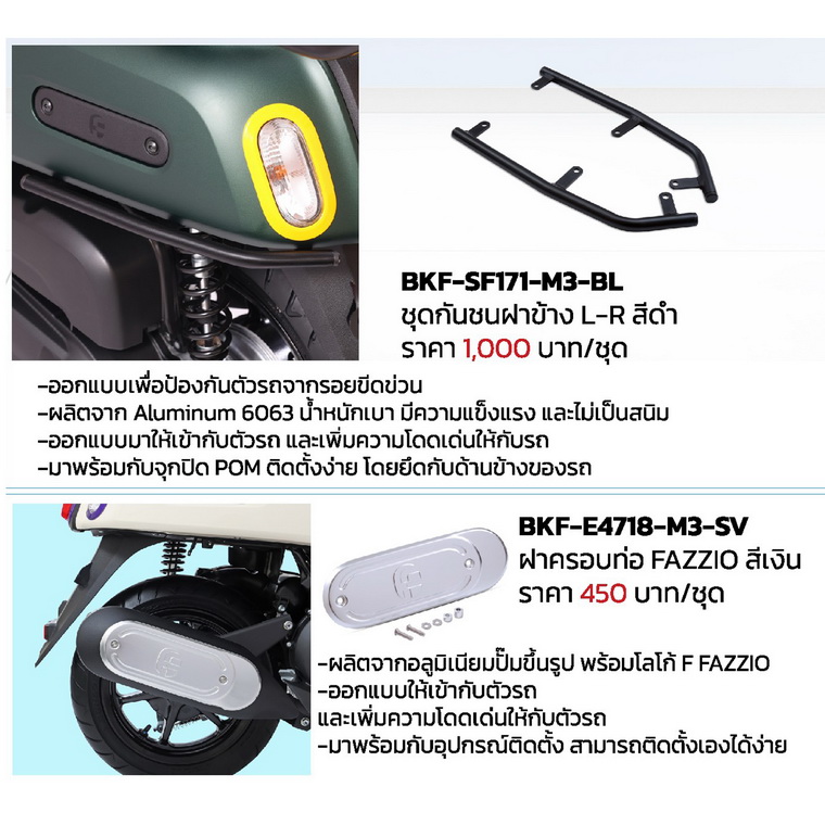 สำหรับผู้ที่สนใจ ACCESSORIES อุปกรณ์ตกแต่งยามาฮ่าแท้! ของ YAMAHA FAZZIO HYBRID CONNECTED...Customized Your Fazzio, Your Style! สไตล์ไหนก็แต่งได้ไม่ยั้ง!! สามารถสอบถามเพิ่มเติมได้ที่ร้านผู้จำหน่ายรถจักรยานยนต์ยามาฮ่าทั่วประเทศ