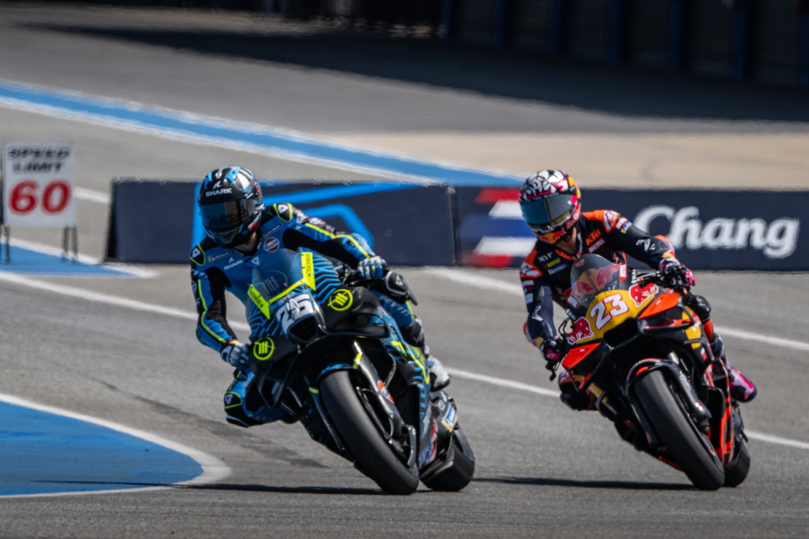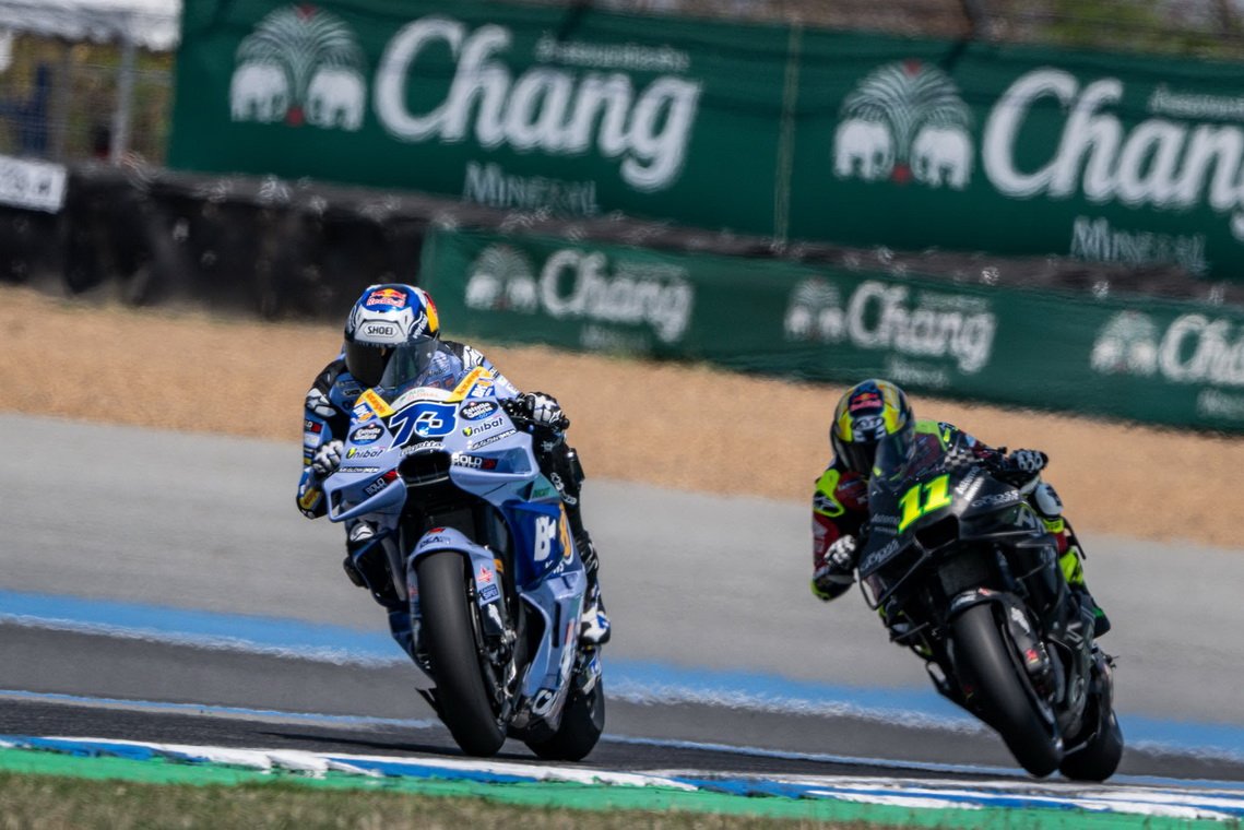 ทัพนักบิดระดับพระกาฬของโลกในศึก โมโตจีพี ลงโชว์ลีลาต่อหน้าแฟนความเร็วชาวไทยที่เดินทางเข้าสนามอย่างคึกคักในการทดสอบ “พรี-ซีซั่นเทสต์” วันแรก ที่ สนามช้าง อินเตอร์เนชั่นแนล เซอร์กิต จ.บุรีรัมย์ โดย อเล็กซ์ มาร์เกซ รองแชมป์โลกจาก เกรซินี เรซซิ่ง ทะยานรั้งจ่าฝูงเหนือพี่ชายอย่าง มาร์ค มาร์เกซ จากทีมโรงงานดูคาติ ที่ล้มไปถึง 2 ครั้ง เพียง 0.129 วินาที ขณะที่นักบิดทุกคนทำเวลาสูสีอย่างมาก โดยอันดับ 1 ถึง 17 มีระยะห่างเพียง 1 วินาทีเท่านั้น ส่งสัญญาณความมันส์ระดับโลกในสนามแรกของฤดูกาลอย่าง “พีที กรังด์ปรีซ์ ออฟ ไทยแลนด์” ที่จะมีขึ้นในสุดสัปดาห์ข้างหน้า