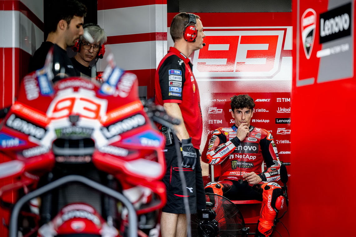 บรรยากาศในวันแรก นักบิดทุกคนจากทุกทีมทำงานกันอย่างหนัก ซึ่งในช่วงเช้า มาร์ค มาร์เกซ แชมป์โลกพรีเมียร์คลาส 7 สมัย จาก ดูคาติ เลอโนโว ทีม พลาดล้มถึง 2 ครั้งที่โค้ง 12 และเจ้าตัวมีแผลถลอกที่แขนเล็กน้อย แต่ยังสามารถลงทดสอบต่อได้