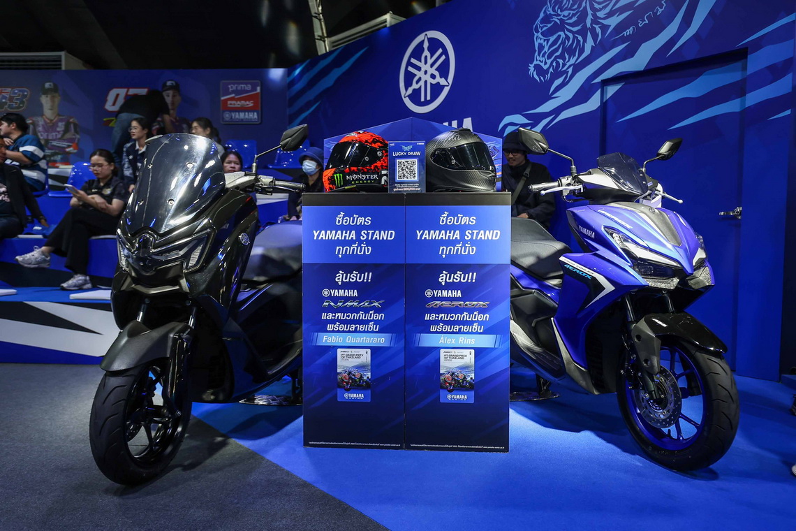 พิเศษสำหรับผู้ถือบัตร YAMAHA STAND ลุ้นรับ YAMAHA NMAX รุ่น STD พร้อมหมวกกันน็อกรุ่นรุ่น RPHA1 QUARTARARO REPLICA 2024 MC1 จำนวน 1 ใบ มูลค่า 35,900 บาท พร้อมลายเซ็นจาก Fabio Quartararo จำนวน 1 รางวัล และ YAMAHA AEROX พร้อมหมวกกันน็อก Scorpion EXO-R1 EVO Carbon Air Solid Matt Black จำนวน 1 ใบ มูลค่า 18,400 บาท พร้อมลายเซ็น Alex Rins รวมมูลค่าของรางวัลทั้งสิ้น 238,700 บาท ประกาศรายชื่อผู้โชคดีเฟซบุ๊ก Yamaha Society Thailand ในวันที่ 5 มีนาคม 2569 เวลา 10:00 น.