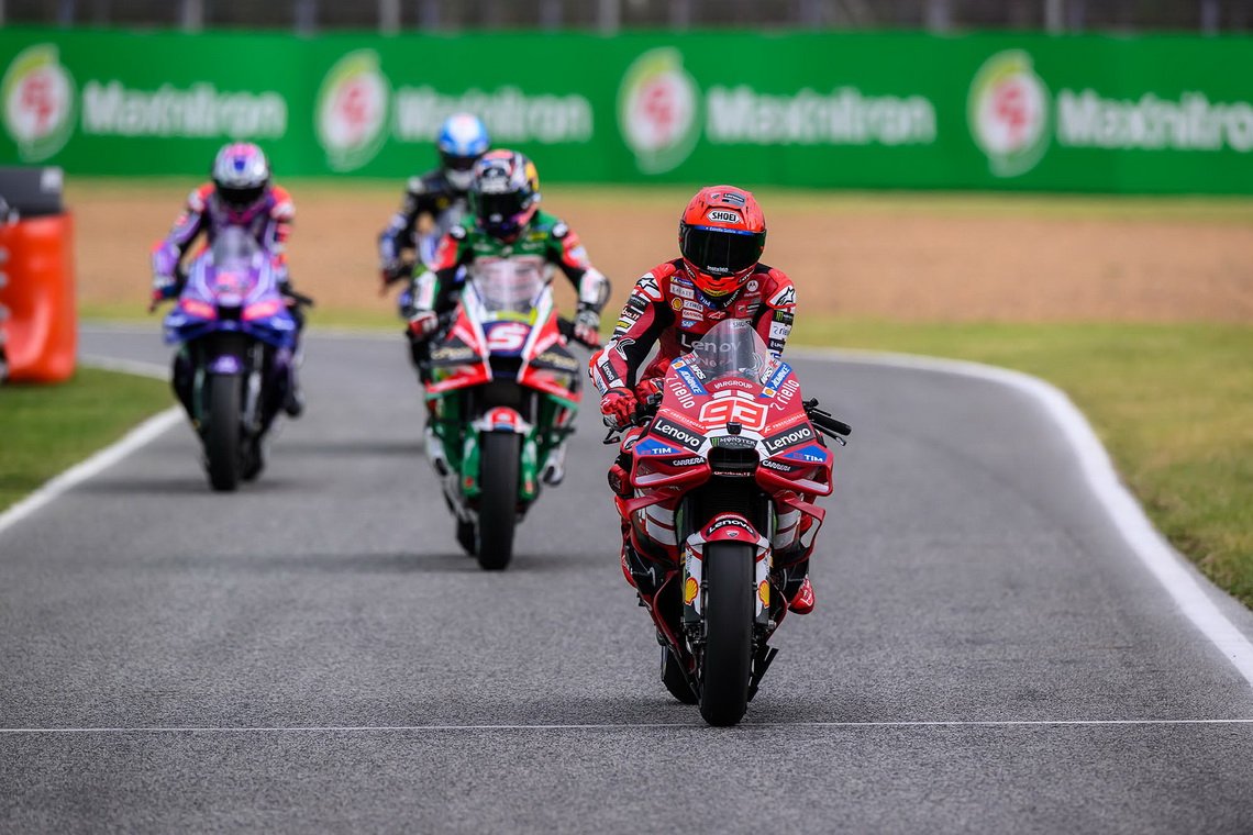 ด้าน เปโดร อคอสต้า นักบิดดาวโรจน์จาก เรดบูล เคทีเอ็ม แฟ็คตอรี เรซซิ่ง ขยับขึ้นมารั้งอันดับ 4 ตามหลังจ่าฝูง 0.659 วินาที ตามด้วยแชมป์โลกปี 2024 อย่าง ฮอร์เก มาร์ติน นักแข่งชาวสแปนิชจาก อพริเลีย เรซซิ่ง ในอันดับ 5 ซึ่งตามหลังทีมเมทอยู่ 0.703 วินาที ส่วน อเล็กซ์ มาร์เกซ หนึ่งในเต็งแชมป์โลกชาวสแปนิชจาก เกรซินี เรซซิ่ง โมโตจีพี จบวันแรกในอันดับ 6 ตามหลัง 0.850 วินาที
