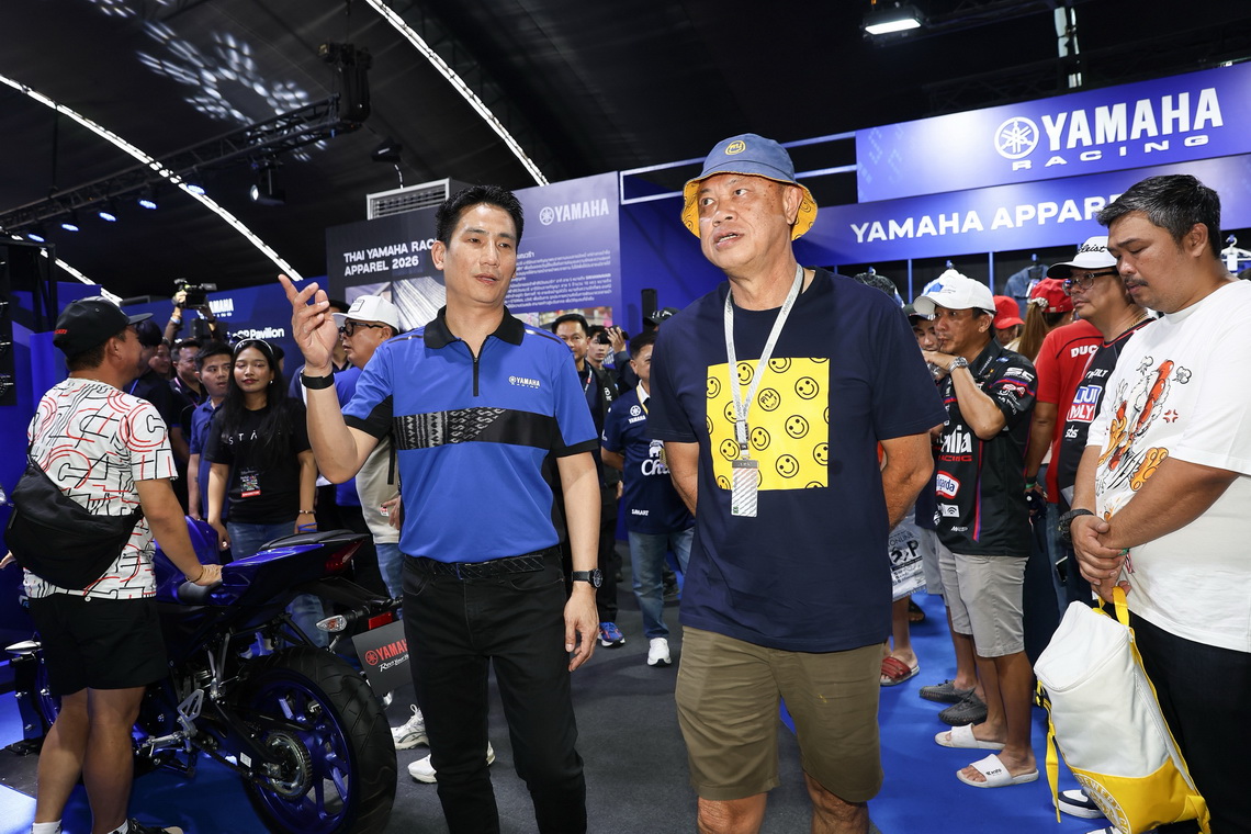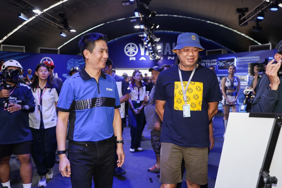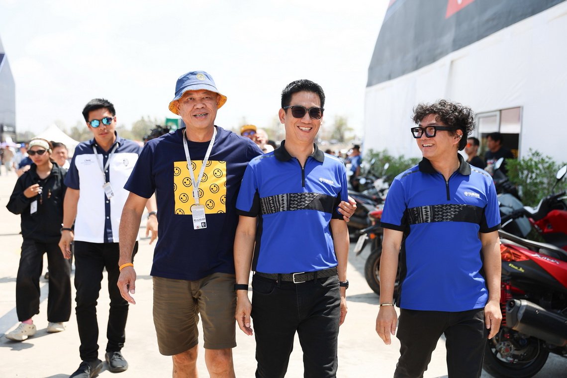 นายอุกฤษณ์ ภาควิวรรธ รองผู้จัดการใหญ่ด้านวางแผนการค้า และการตลาด และนายจิรภัทร สายเพชร ผู้จัดการทั่วไปฝ่ายสื่อสารการตลาด และส่งเสริมการตลาด บริษัท ไทยยามาฮ่ามอเตอร์ จำกัด ให้การต้อนรับ นายเนวิน ชิดชอบ ประธานสนามช้าง อินเตอร์เนชั่นแนล เซอร์กิต จำกัด พร้อมด้วยนายโชติชนก ชิดชอบ ผู้อำนวยการฝ่ายกิจกรรมต่างประเทศ บริษัท บุรีรัมย์ ยูไนเต็ด อินเตอร์เนชั่นแนล เซอร์กิต จำกัด และคณะผู้บริหาร ในโอกาสเข้าเยี่ยมชมบูท YamahaGP Pavilion ภายในงานแข่งขัน MotoGP 2026 ณ สนามช้าง อินเตอร์เนชั่นแนล เซอร์กิต จังหวัดบุรีรัมย์
