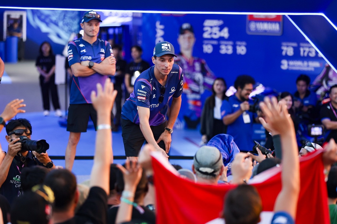 กิจกรรมกระทบไหล่ 4 นักแข่งชั้นนำระดับโลกจากยามาฮ่า จัดขึ้นอย่างยิ่งใหญ่ ณ บริเวณหน้าโดมยักษ์ YamahaGP Pavilion ในการแข่งขัน ThaiGP 2026 ที่ผ่านมาเมื่อเร็ว ๆ นี้