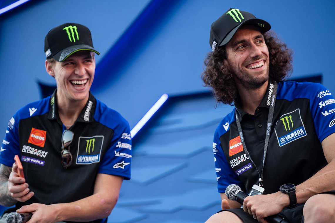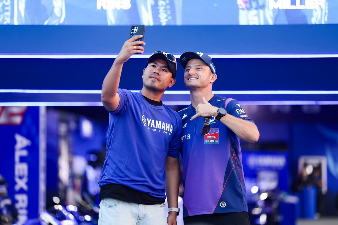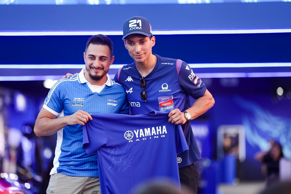 มร.โมโตฟูมิ ชิทาระ ประธาน บริษัท ยามาฮ่ามอเตอร์ จำกัด พร้อมด้วย นายพงศธร เอื้อมงคลชัย ประธานกรรมการบริหาร และ มร.ฮิเดฮิโกะ ทาคากิ รองประธานกรรมการบริหาร บริษัท ไทยยามาฮ่ามอเตอร์ จำกัด ให้การต้อนรับ และถ่ายภาพร่วมกับ 4 นักแข่งระดับโลก ได้แก่ ฟาบิโอ กวาร์ตาราโร #20 และ อเล็กซ์ รินส์ #42 จากสังกัด Monster Energy Yamaha MotoGP Team รวมถึง แจ็ค มิลเลอร์ #43 และ โทปรัค ราซกัตลิโอกลู #07 จากสังกัด Prima Pramac Yamaha MotoGP Team พร้อมมอบเสื้อ YAMAHA Racing ThaiGP Collection รุ่นพิเศษเป็นที่ระลึก ในกิจกรรม Meet and Greet สุดเอกซ์คลูซีฟ ภายในงาน ThaiGP 2026