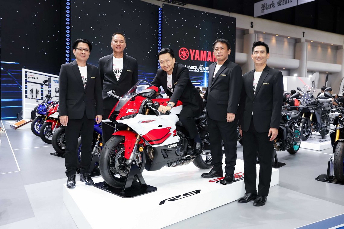 นายพงศธร เอื้อมงคลชัย ประธานกรรมการบริหาร และ มร.ฮิเดฮิโกะ ทาคากิ รองประธานกรรมการบริหาร พร้อมคณะผู้บริหารระดับสูง บริษัท ไทยยามาฮ่ามอเตอร์ จำกัด ถ่ายภาพร่วมกับ ดร.ปราจิน เอี่ยมลำเนา ประธานการจัดงาน นายจาตุรนต์ โกมลมิศร์ รองประธานการจัดงาน นายพีระพงศ์ เอี่ยมลำเนา ประธานเจ้าหน้าที่บริหาร และนายอโณทัย เอี่ยมลำเนา กรรมการบริหาร บริษัท กรังด์ปรีซ์ อินเตอร์เนชั่นแนล จำกัด (มหาชน) ในพิธีเปิดบูท “YAMAHA THE UNIQUEVERSE” อย่างเป็นทางการ ภายในงานบางกอก อินเตอร์เนชั่นแนล มอเตอร์โชว์ ครั้งที่ 47