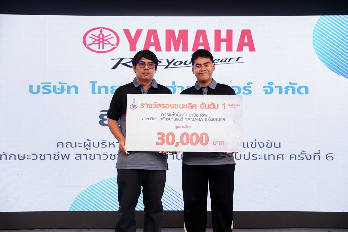 ทั้งนี้ “การแข่งขันทักษะวิชาชีพ สาขาวิชารถจักรยานยนต์” ระดับประเทศ ชิงถ้วยพระราชทาน สมเด็จพระกนิษฐาธิราชเจ้า กรมสมเด็จพระเทพรัตนราชสุดาฯ สยามบรมราชกุมารี ปีที่ 6 ได้รับพระมหากรุณาธิคุณ โปรดเกล้าฯ พระราชทานถ้วยรางวัลแก่ผู้ที่ทำคะแนนสูงสุด ซึ่งนับเป็นเกียรติสูงสุดแก่ผู้เข้าแข่งขันและสถาบันการศึกษา สะท้อนถึงความสำคัญของการพัฒนาทักษะวิชาชีพในระดับประเทศ นอกจากนี้ บริษัท ไทยยามาฮ่ามอเตอร์ จำกัด ยังได้สนับสนุนทุนการศึกษารวมมูลค่ากว่า 100,000 บาท ให้แก่ผู้ที่ทำคะแนนสูงสุด 3 อันดับแรก เพื่อส่งเสริมและสร้างแรงจูงใจให้เยาวชนก้าวสู่การเป็นบุคลากรคุณภาพของประเทศในอนาคต โดยผลการแข่งขันครั้งนี้มีดังต่อไปนี้...