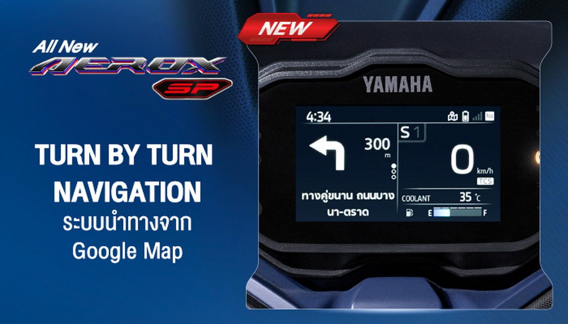หน้าจอ TFT ของ AEROX SP รองรับการเชื่อมต่อ Bluetooth กับสมาร์ทโฟน ผ่านแอป Y-Connect ช่วยให้ผู้ขับขี่เข้าถึงข้อมูลรถและข้อมูลส่วนตัวได้สะดวกมากขึ้น เช่น